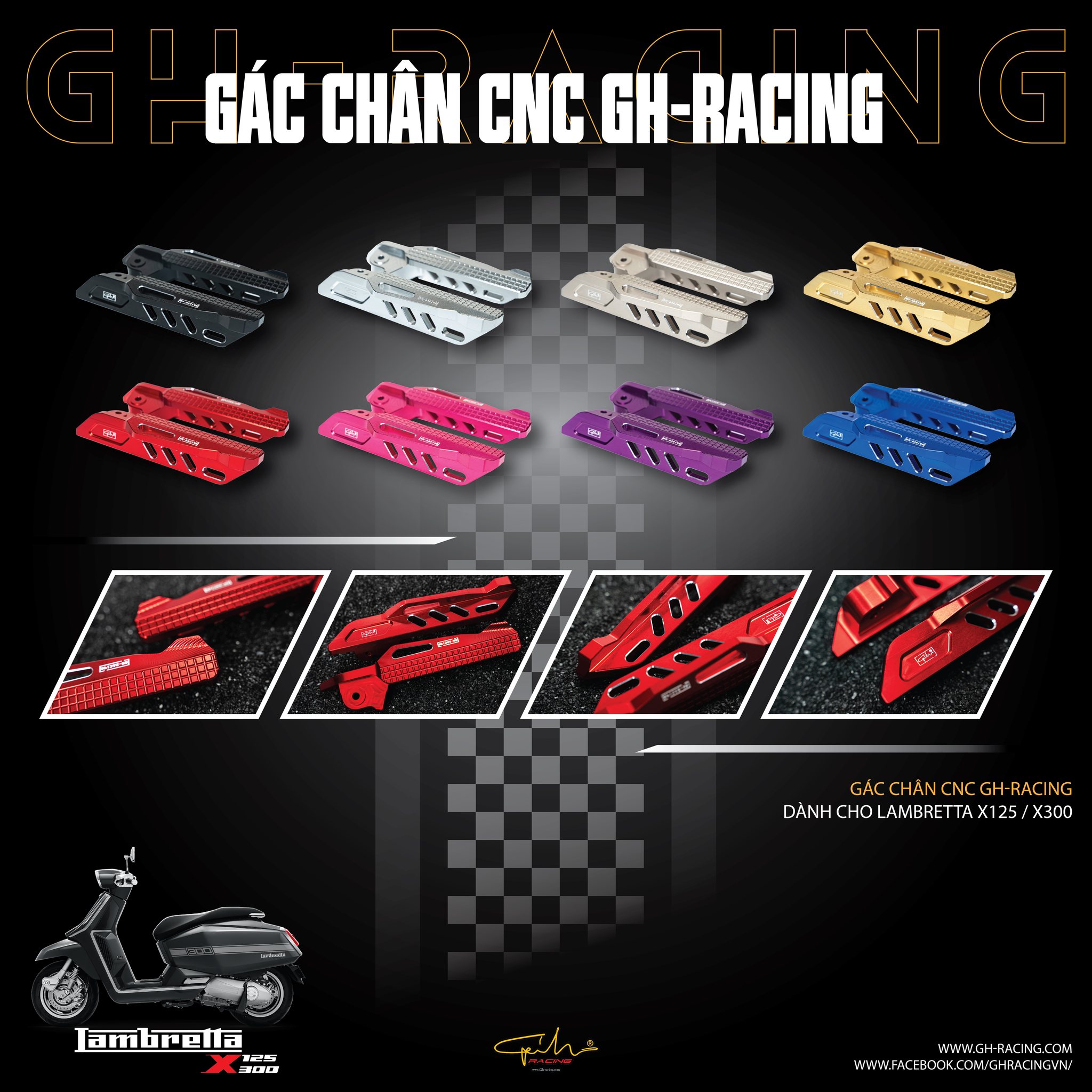 GÁC CHÂN CNC GH-RACING DÀNH CHO LAMBRETTA X125 / X300