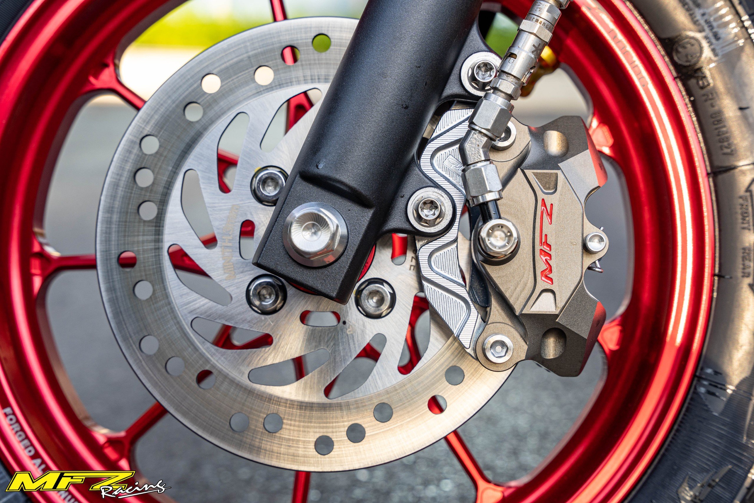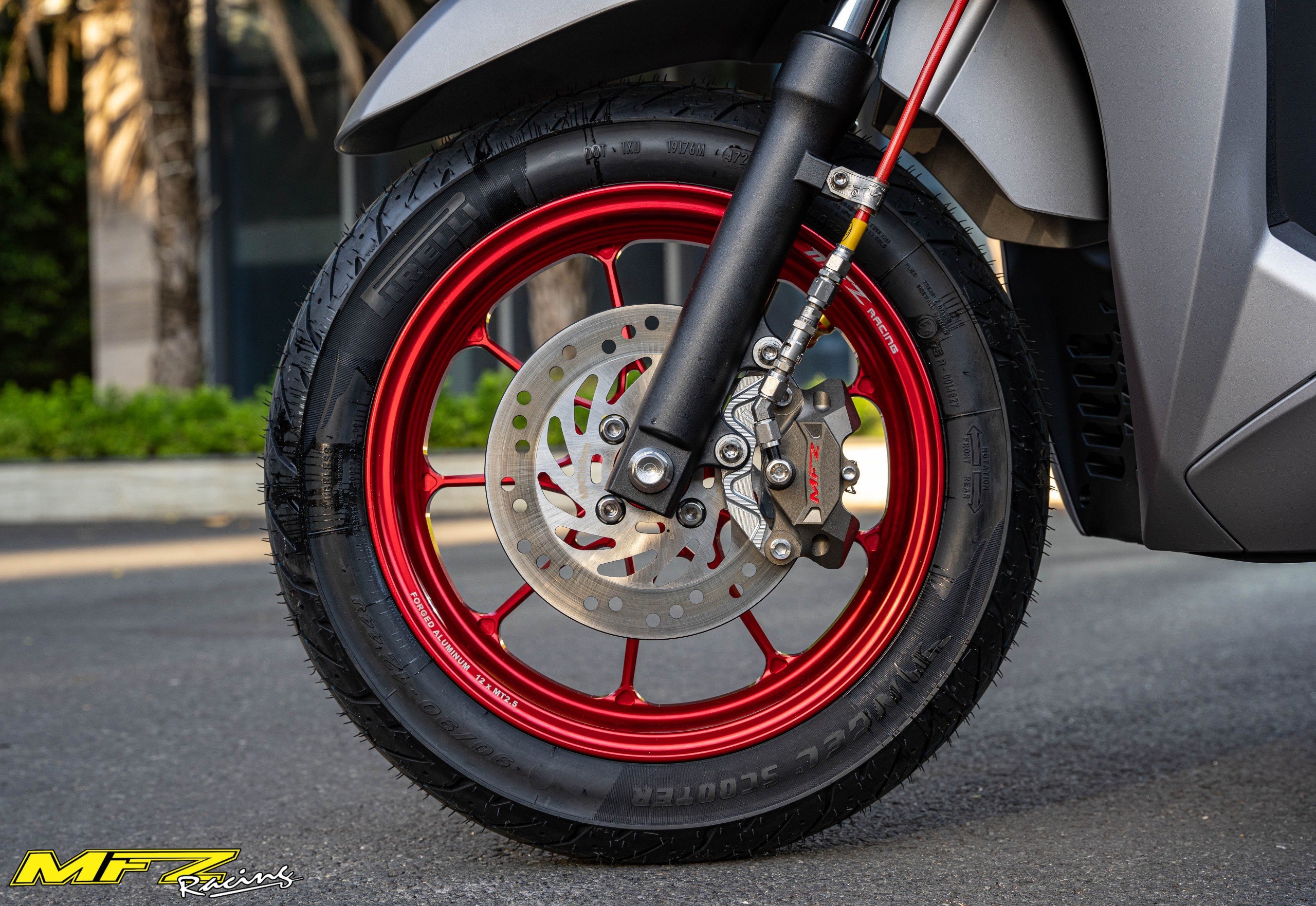 - Màu sắc và logo nổi bật: Anod màu xám xi măng kết hợp với logo MFZ màu đỏ tạo điểm nhấn thẩm mỹ, phù hợp với nhiều phong cách xe