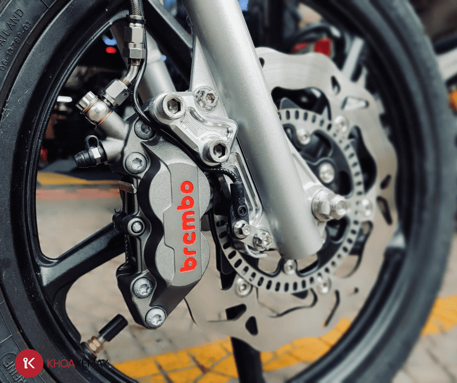 Thiết kế 4 piston đối xứng giúp tăng khả năng tản nhiệt, phân bổ lực kẹp đều và mạnh, từ đó mang lại hiệu quả phanh mượt, ổn định kể cả khi phanh gấp hay khi di chuyển ở tốc độ cao.