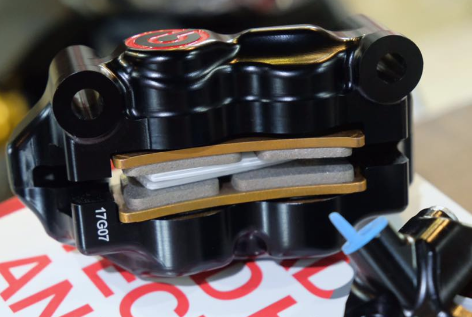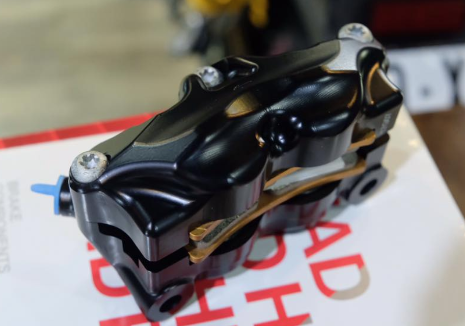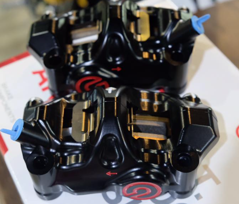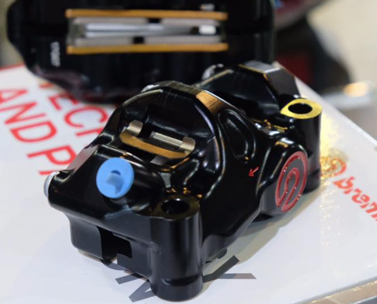 Lỗ ốc 100mm với thiết kế nhôm nguyên khối ( Billet ) được gia công cnc cho độ hoàn thiện cao, sản phẩm được anode màu đen. Nổi bật phần dàn chân trước và cho lực phanh ổn định và kiểm soát tốt từ hãng Brembo