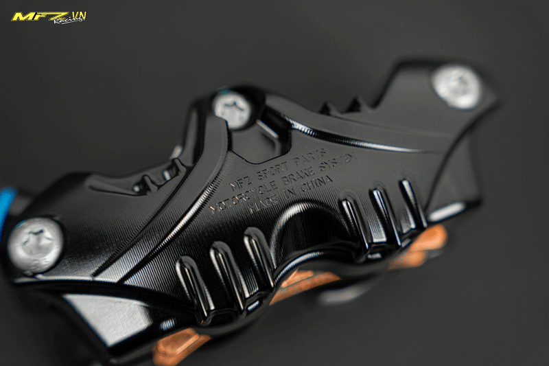 Thiết kế 4 piston đối xứng giúp lực kẹp phân bổ đều lên bề mặt bố thắng, từ đó mang lại hiệu quả phanh mượt, ổn định hơn khi di chuyển ở tốc độ cao hoặc trong các tình huống phanh gấp. Cấu trúc này thường xuất hiện trên các dòng heo hiệu suất cao, sử dụng piston đường kính lớn khoảng 30mm để tối ưu lực bóp