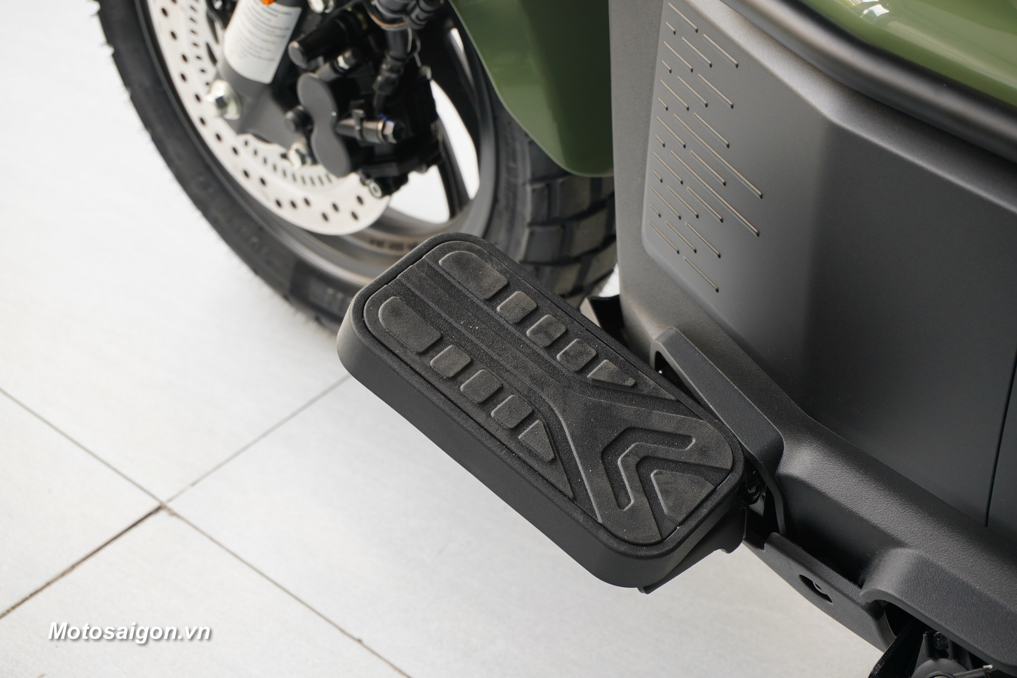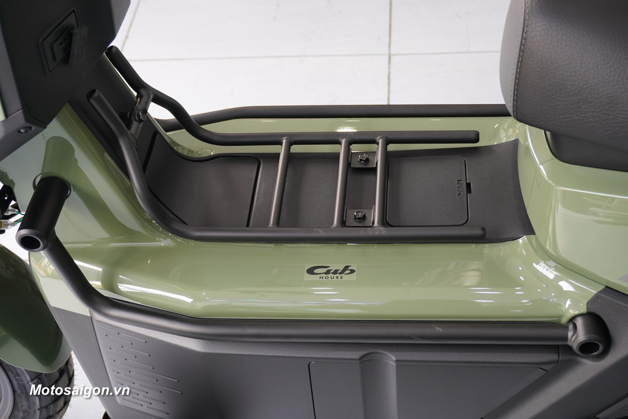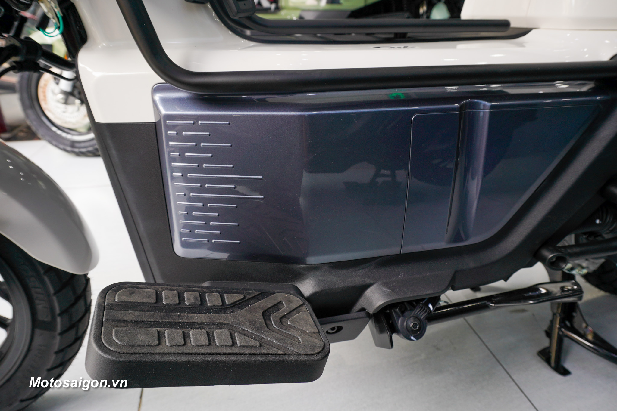 Không gian để chân rộng rãi kết hợp cùng các điểm chờ trên khung xe cho phép người dùng dễ dàng lắp thêm phụ kiện như thùng chứa đồ hoặc giá chở đồ phục vụ nhu cầu cá nhân.