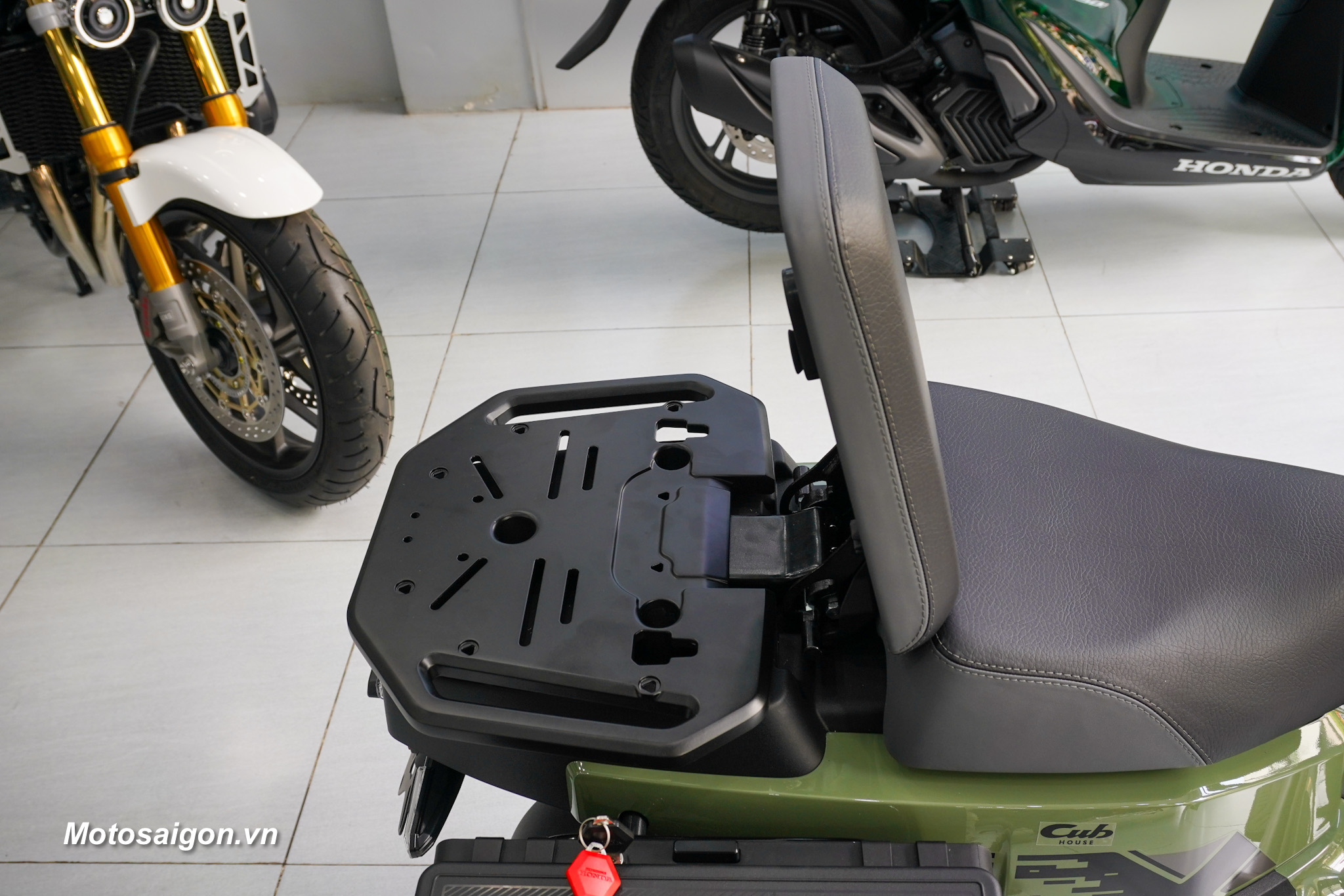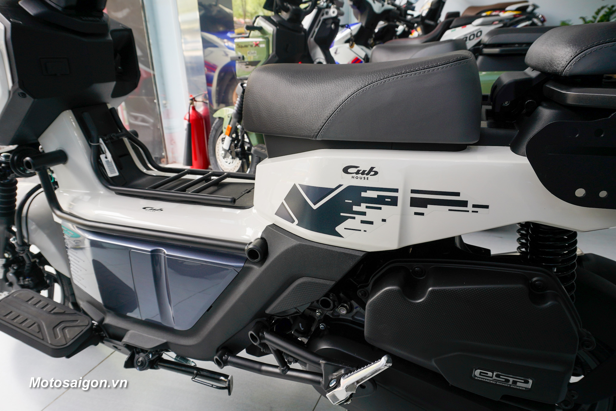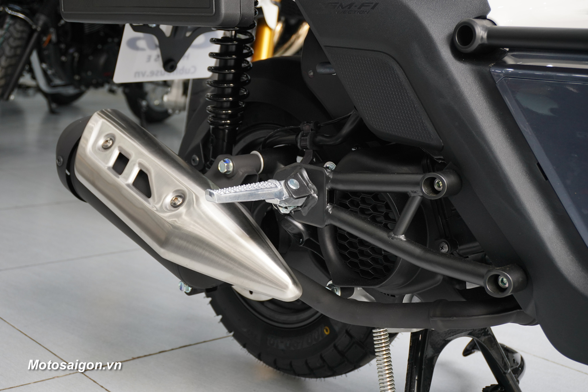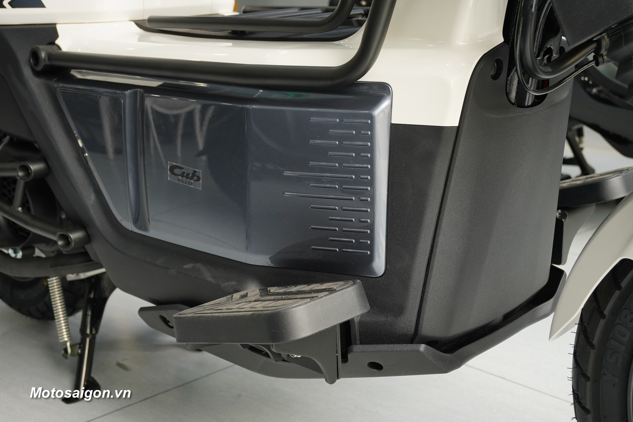 Không gian để chân rộng rãi kết hợp cùng các điểm chờ trên khung xe cho phép người dùng dễ dàng lắp thêm phụ kiện như thùng chứa đồ hoặc giá chở đồ phục vụ nhu cầu cá nhân.