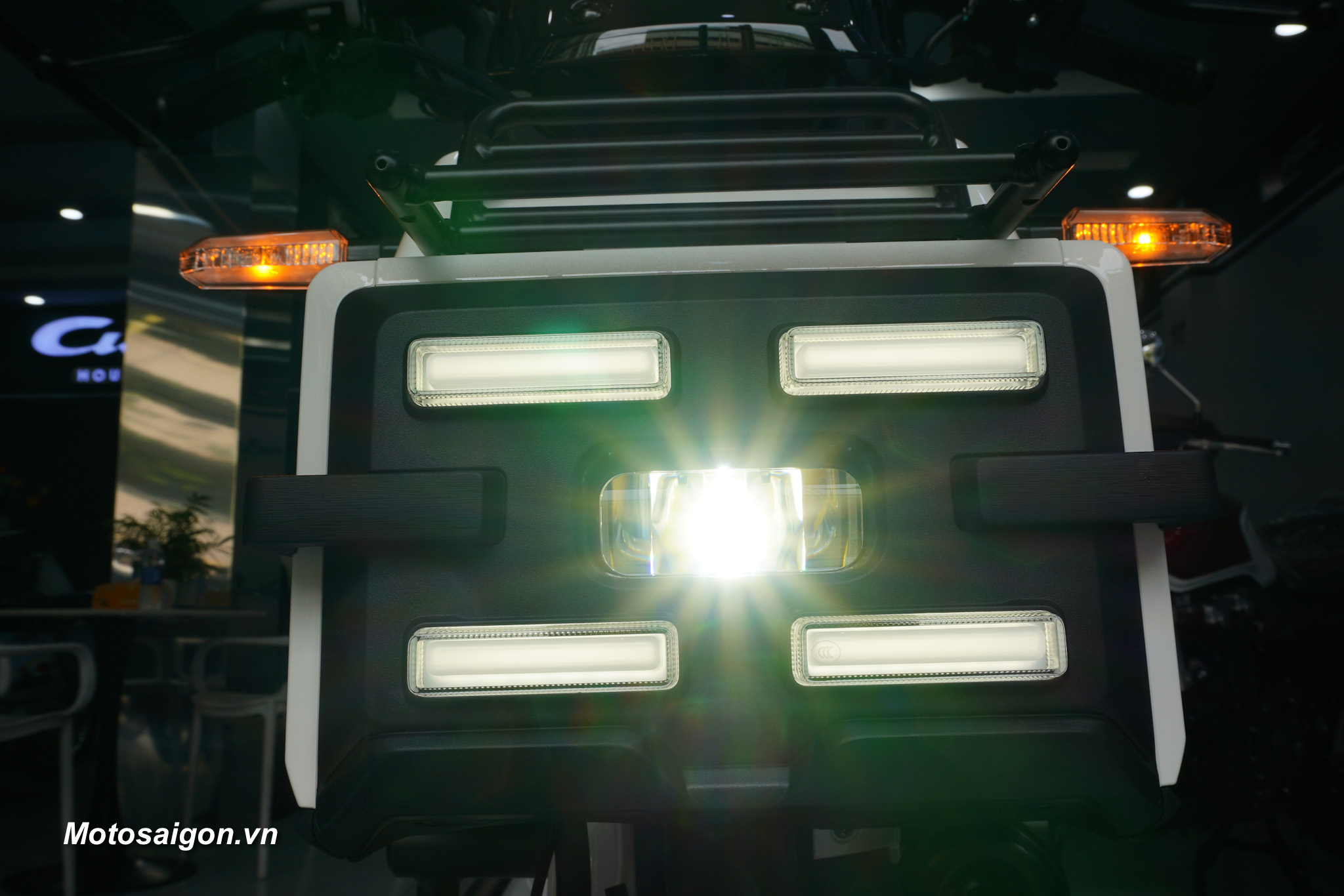 Hệ thống đèn pha LED phía trước sử dụng dạng khối chữ nhật lớn, thay vì kiểu vuốt nhọn phổ biến, mang đến sự kết hợp thú vị giữa nét hoài cổ và hơi hướng tương lai.