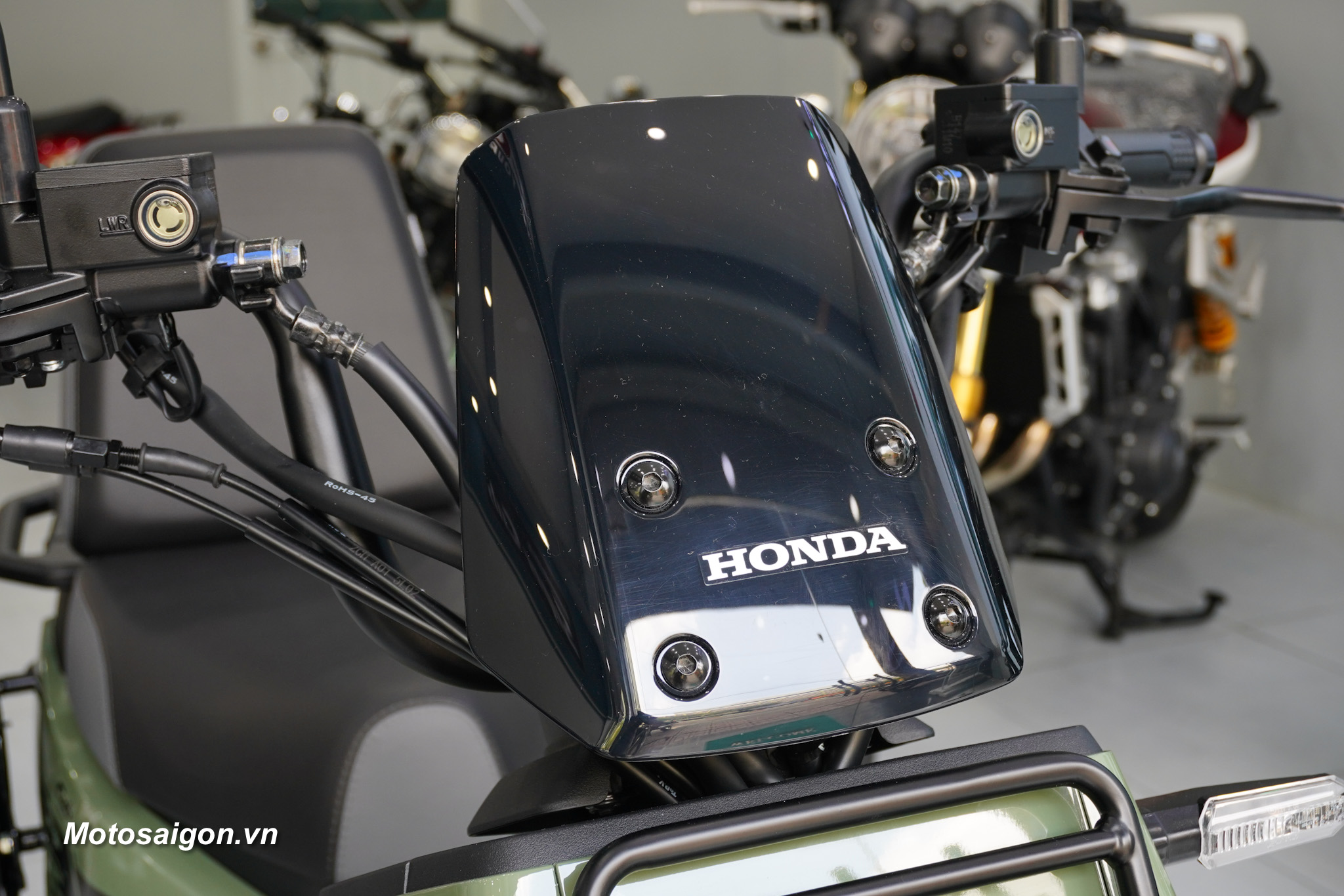 Trên lốc máy phiên bản quốc tế, logo HONDA được hoàn thiện nổi bật với tông màu đỏ, tạo điểm nhấn thể thao.