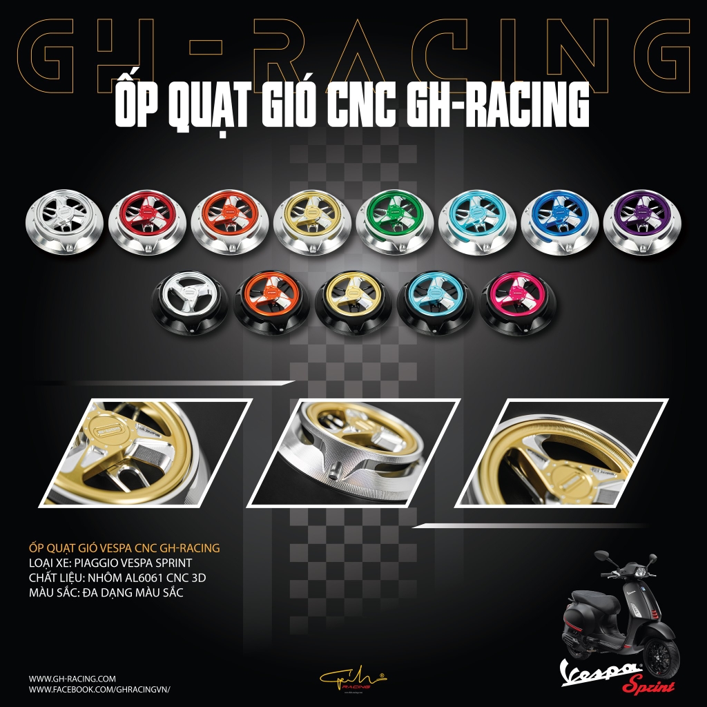 ỐP QUẠT GIÓ VESPA SPRINT CNC – GH RACING