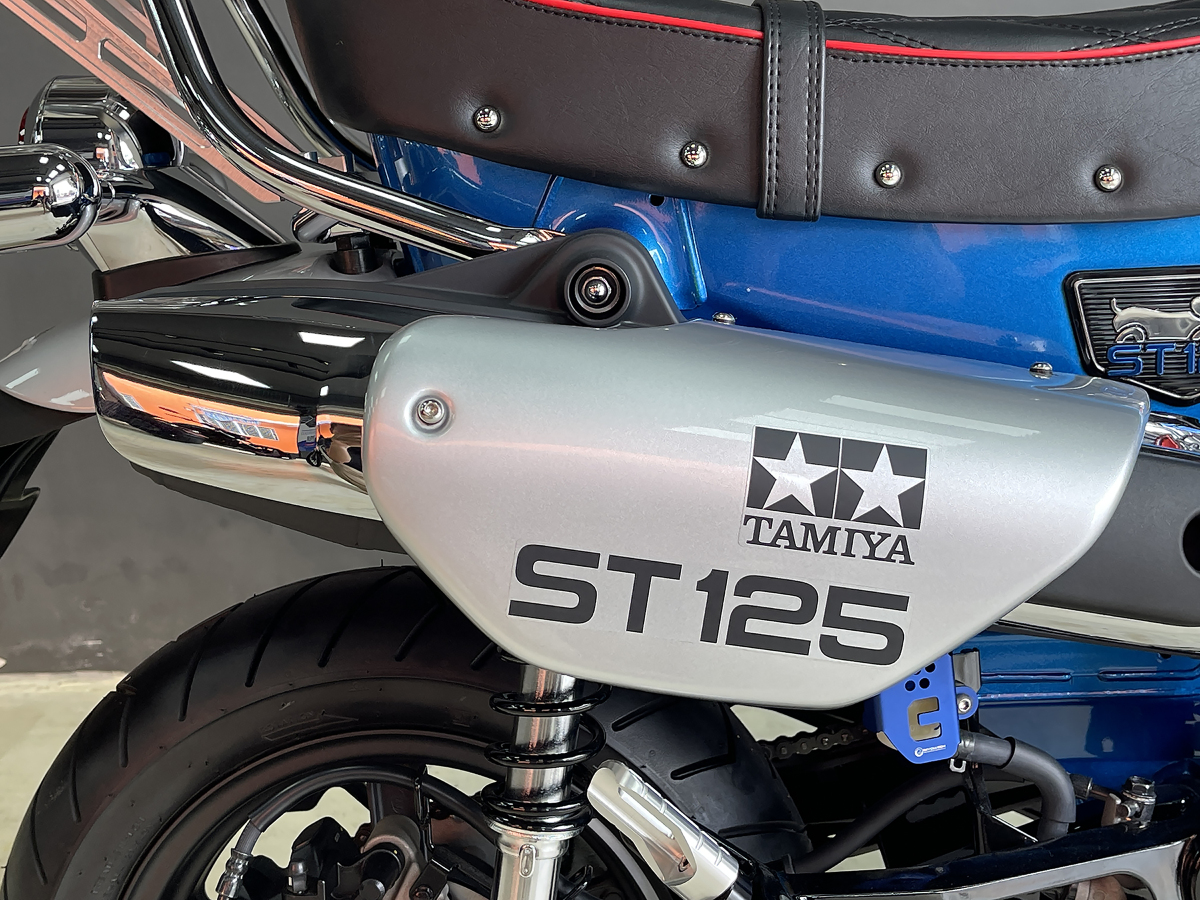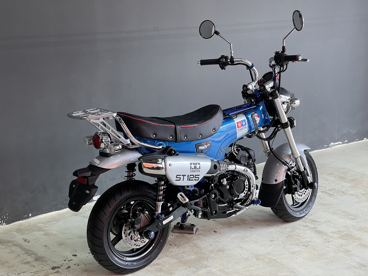 Màu sơn xanh chủ đạo của chiếc Honda Dax giống màu xanh trên logo hãng chế tạo đồ chơi Nhật. Các chi tiết như ốp logo chú chó Dachshund (chó xúc xích, chó lạp xưởng) trên thân xe, ốp che ống xả được mạ crôm. Riêng hình ảnh chó Dachshund đội nón được khắc 3D và dòng chữ ST 125 sơn xanh trùng màu thân xe.